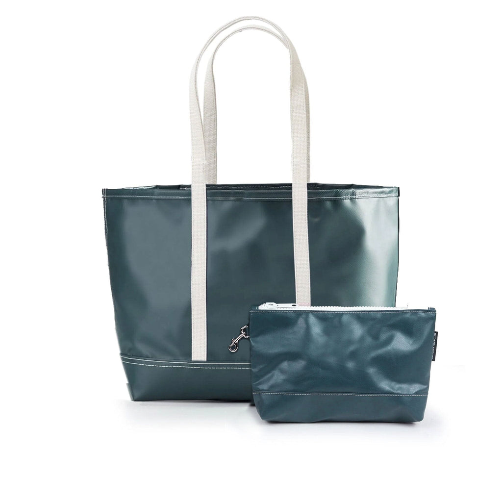A big tote built for beach days and everyday hauling. Comes with a zip top water resistant pouch. Built from rugged 18 oz vinyl this bag is lightweight, yet tear resistant and perfect for all weather activities. Just shake out or hose out down when done. Add a custom embroidered monogram to make it your own. Made in the USA.